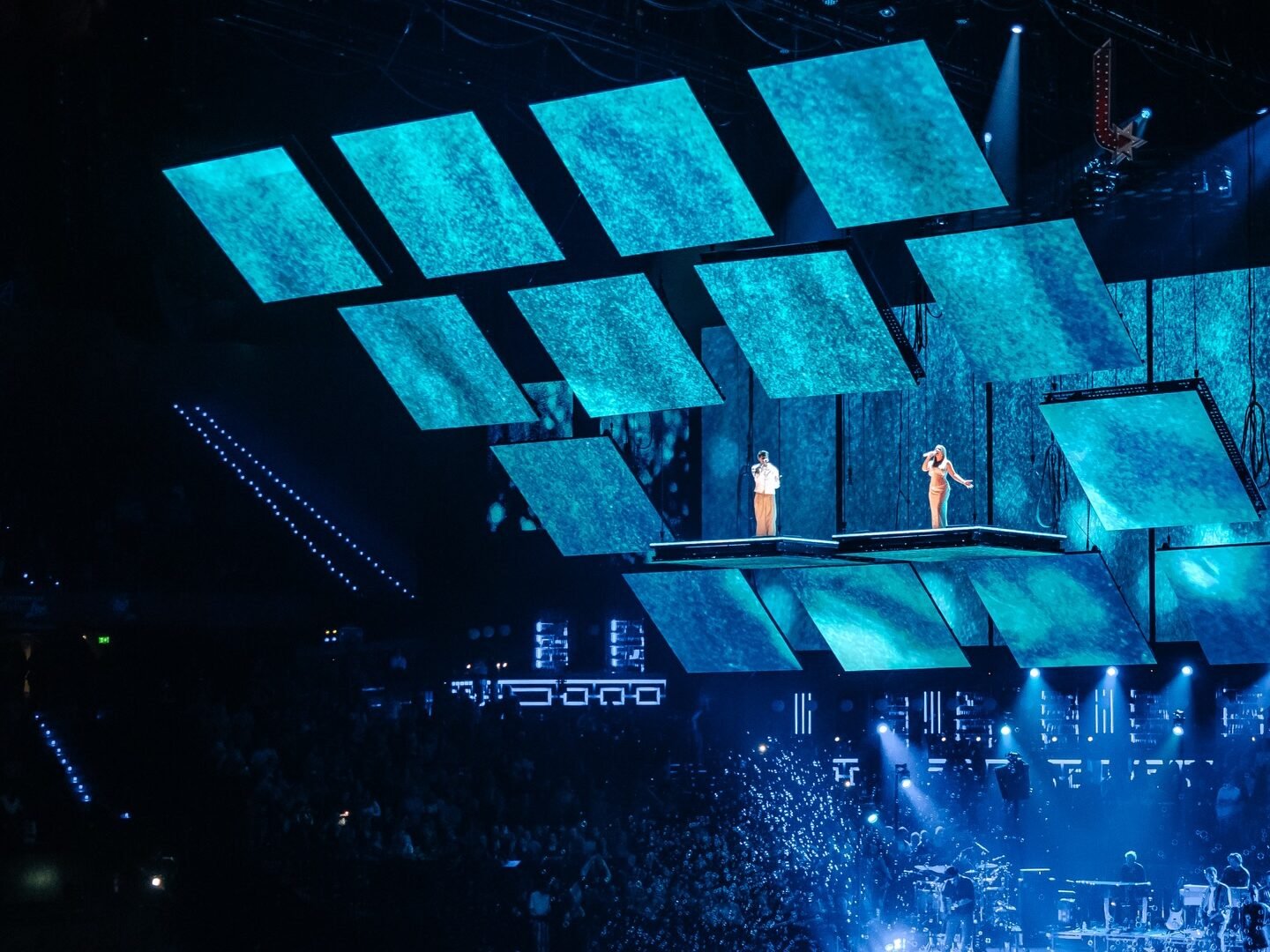 De schaal van de techniek onderstreepte het niveau van deze productie. In totaal hing er circa 165 ton aan techniek in de zaal, verdeeld over 370 hijspunten. Het motionsysteem bestond uit 192 meter rail met 9 actieve en 11 passieve trolleys, aangevuld met 6 rotators, een breed pakket VMK-motoren in verschillende capaciteiten en 4 XHD rotators voor de B-stage. Binnen deze setup lag onze focus continu op controle, veiligheid en betrouwbaarheid, zodat de motion onzichtbaar maar feilloos zijn werk kon doen.